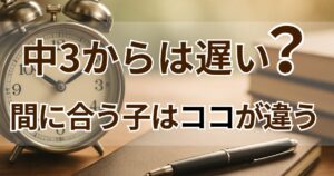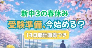 お悩み別に記事を探す よく読まれている記事 【新中2の春休み】何すればいい?英数だけでOK1学期がラクになる勉強法と計画表 2026/3/29 中学生の家庭学習 中2から勉強しても間に合う?成績2〜3の子が変わった3つの復習ステップ【親向け】 2026/3/16 中学生の家庭学習 スープジャー弁当は夜作ってもOK?ぬるい・めんどくさいを解決!簡単活用術 2026/1/19 お弁当・料理 便利グッズ 新着記事 塾に通っているのに成績が上がらない…中学生の転塾を考える前に確認したいこと 塾に通っても成績が上がらない中学生に、親が家庭でできる7つのこと 中3から勉強はもう手遅れ?間に合うケースと厳しいケースを塾講師が本音で解説 【新中3の春休み】何をやる?受験の準備を今始める5つの理由と計画表 【新中2の春休み】何すればいい?英数だけでOK1学期がラクになる勉強法と計画表 author