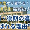 通信制は出願区分や選抜日程が毎年度更新されます。前期・後期などの区分や学力検査の有無は、志望校の最新募集要項を必ず確認してください。